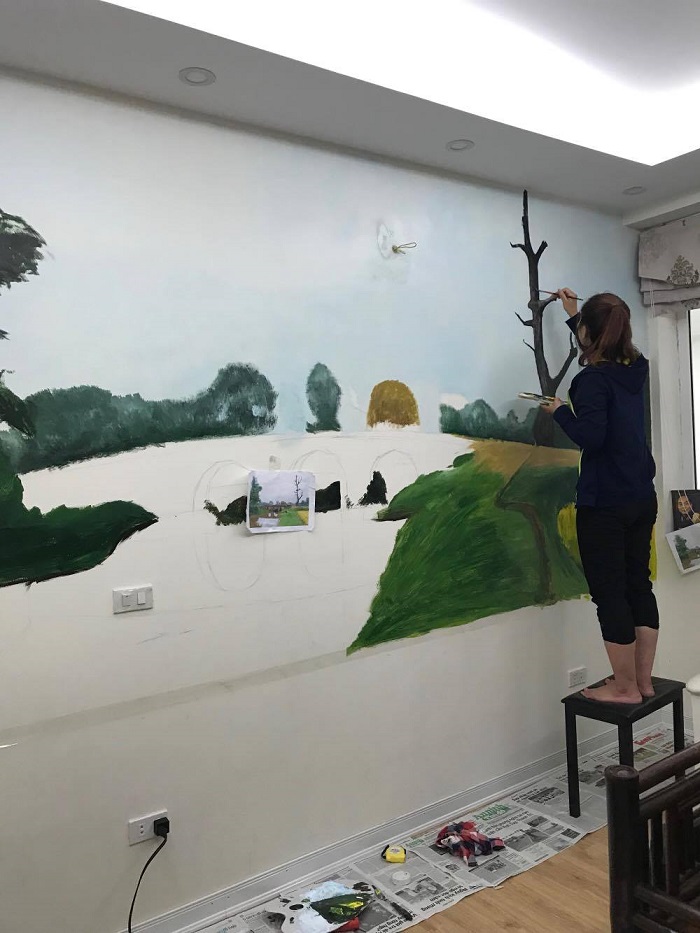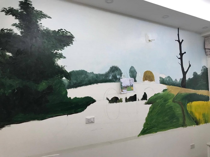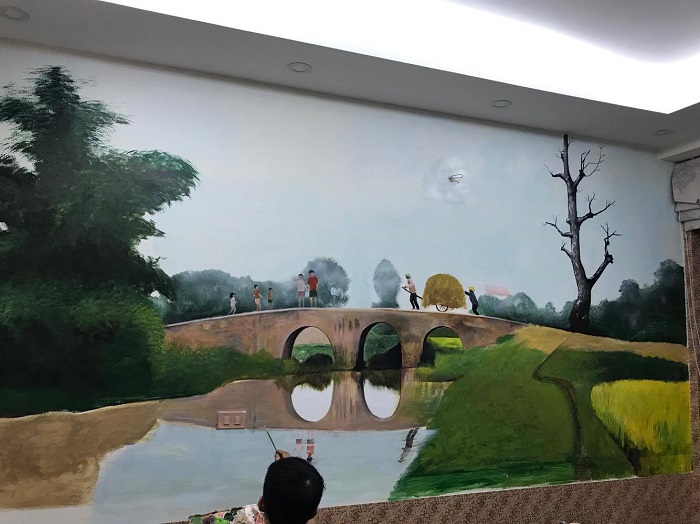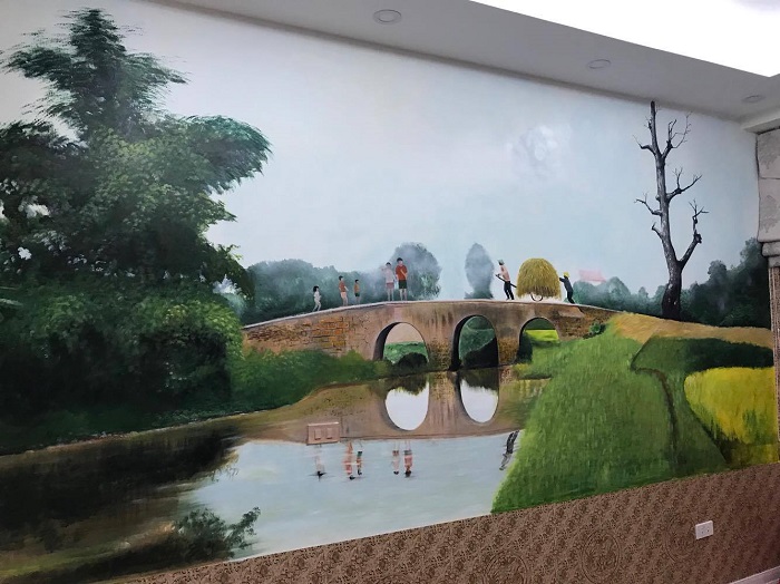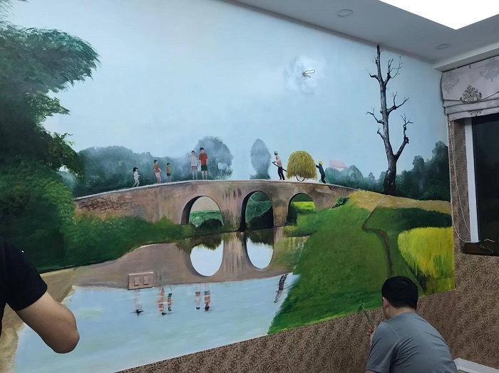 Đó là hình ảnh vẽ tranh tường - Cầu Noi nhà anh Hiển- giám độc CA Huyện Hát Môn. Hãy liên hệ tới tuongdep.net để được tư vấn vẽ tranh tường đẹp