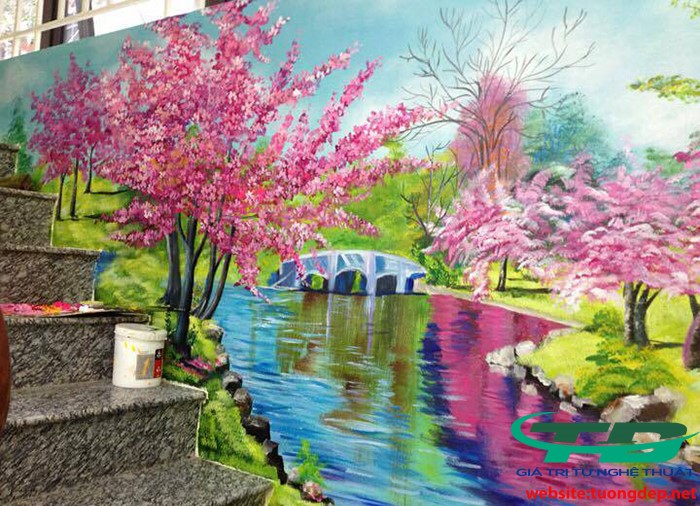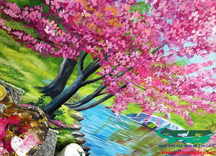 Bức tranh vẽ khung cảnh mùa xuân này sẽ như một nguồn gió mới thổi bùng nên sự tươi trẻ, rực rỡ của mùa xuân trong căn nhà của anh Thủy.