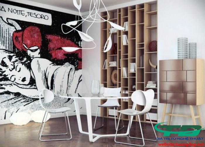 Với những ai yêu thích truyện tranh thì phong cách vẽ tranh tường phòng khách này sẽ là một trong những phong cách tuyệt vời nhất cho bạn.