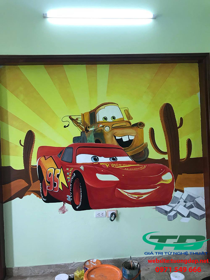 Và gia đình chị Lan cũng vậy. Chị đã tìm hiểu và liên lạc với tuongdep.net để được vẽ tranh tường phòng ngủ bé trai nhà mình.