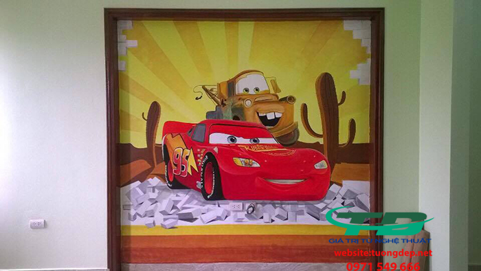 Nếu việc thiết kế không gian sinh động có sử dụng các vật liệu như cây, cỏ, hay đồ vật hữu hình thì khả năng các bé bị va đập là rất cao. Vì vậy mà việc thiết kế một không gian tranh tường cho bé là một lựa chọn khá hoàn hảo.’
