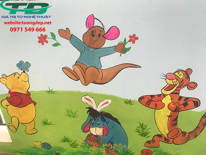 Những bức tranh tường mầm non được các họa sĩ vẽ tỉ mỉ với đôi bàn tay tài hoa của người họa sĩ tạo nên khung trời riêng lung linh và sáng tạo cho các bé.\